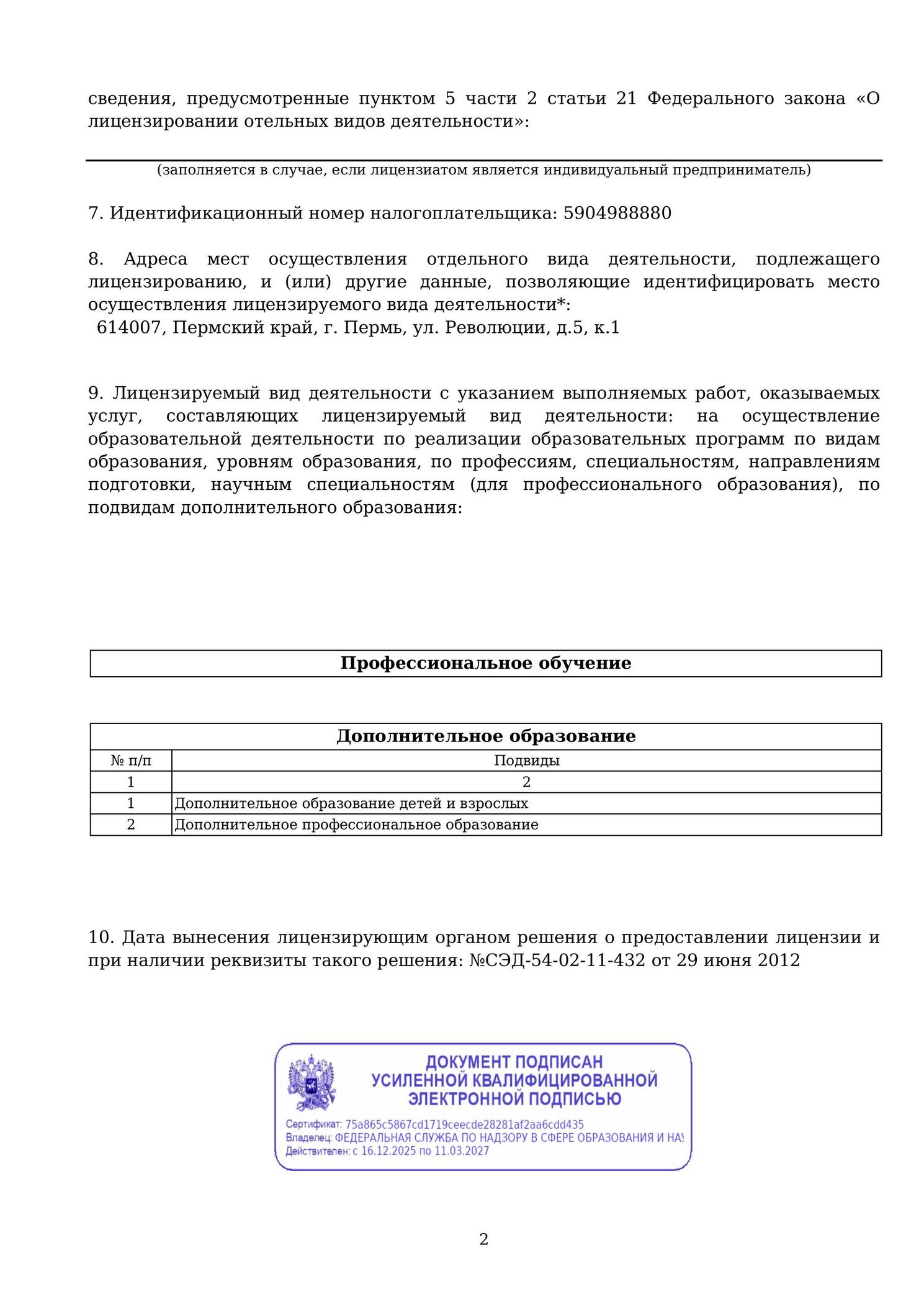 Да, АНО ДПО «Уральский институт повышения квалификации и переподготовки» действует на основании государственной лицензии. Разрешение на ведение образовательной деятельности действует бессрочно с 2015 года. Проверить наличие разрешительной документации можно на сайте Рособрнадзора. Электронные копии разрешений есть в разделе «Сводный реестр лицензий». Перейдите на сайт госструктуры, введите ИНН 5904988880 в соответствующем поле и нажмите кнопку «Поиск». В лицензии будет указана следующая информация: